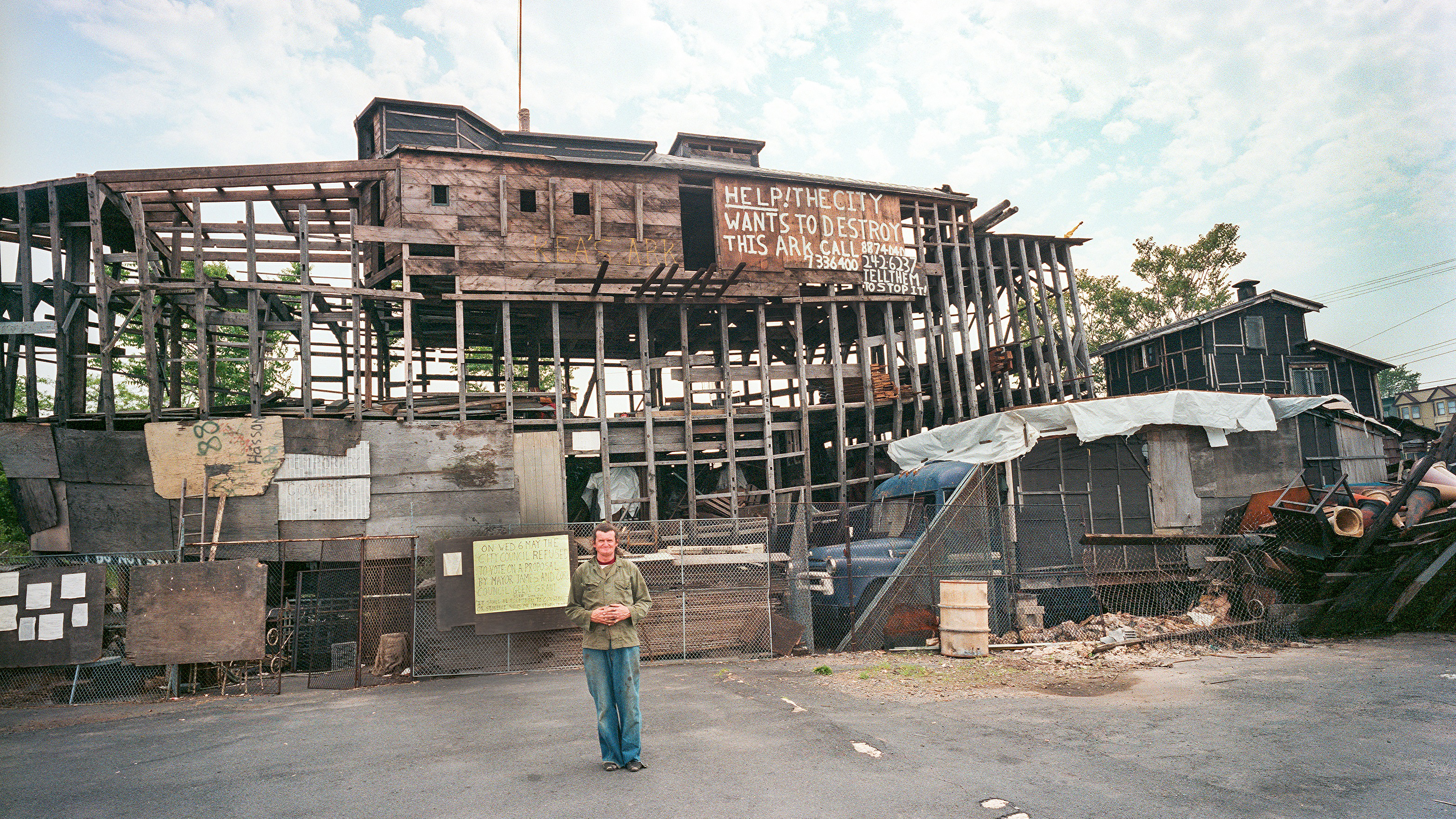 Kea by the upside down flag, Bergen Street at 14th Ave., Newark, 1987